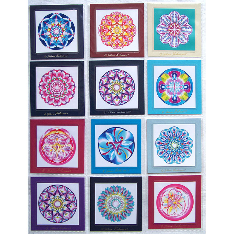 Mandaly jako kartičku 10x10cm nabízím zalaminovanou a umístěnou na barevném papírovém kartonu 12 x12 cm. Vložená je do plastového obalu a na zadní straně má popisku s textem o významu mandaly.