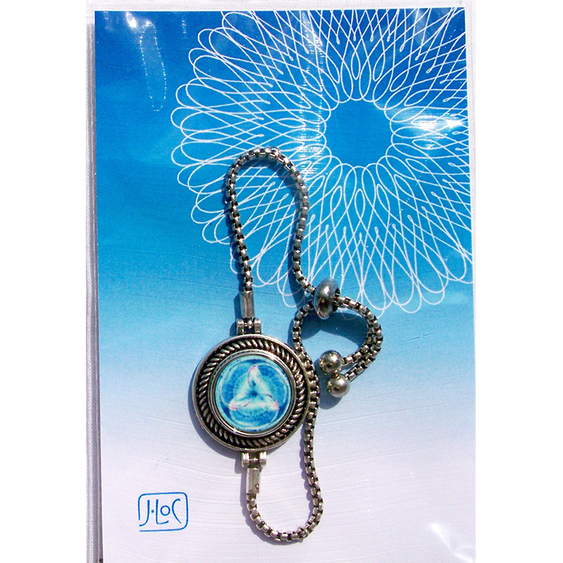 Kovový šperk: náramek s řetízkem a posuvnou sponou - nastavitelnou velikostí podle potřeby. Použitá mandala v průměru 18 mm má zde název a téma: Mandala pohybu a stálosti. Vyjadřuje a podporuje vnitřní propojení s naší duší a její stálé spojení s bohem.
