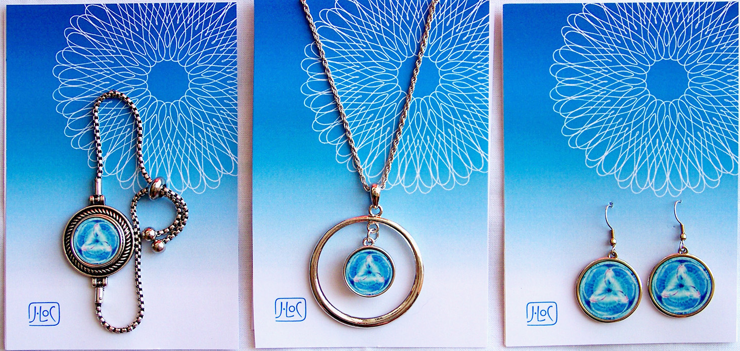 Tato konkrétní sada sestává ze tří prvků: náhrdelníku, náramku a náušnic. Je ukázkou jak může vypadat komplet s použitím jednoho stejného vzoru mandaly.