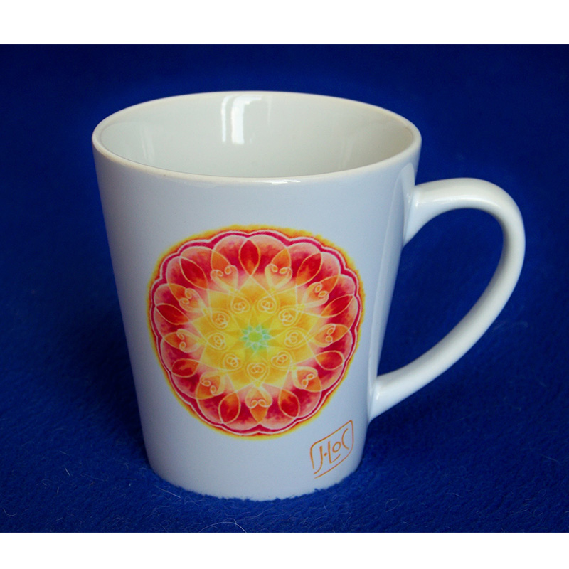 Keramický hrnek bílý s natištěnou mandalou v průměru 7 cm technikou sublimačního tisku.