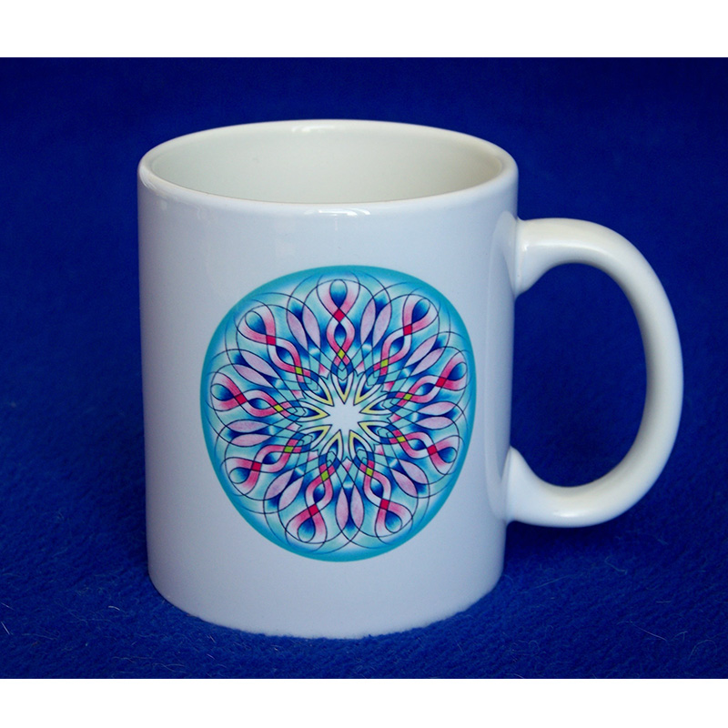 Keramický hrnek bílý s natištěnou mandalou v průměru 7 cm technikou sublimačního tisku.