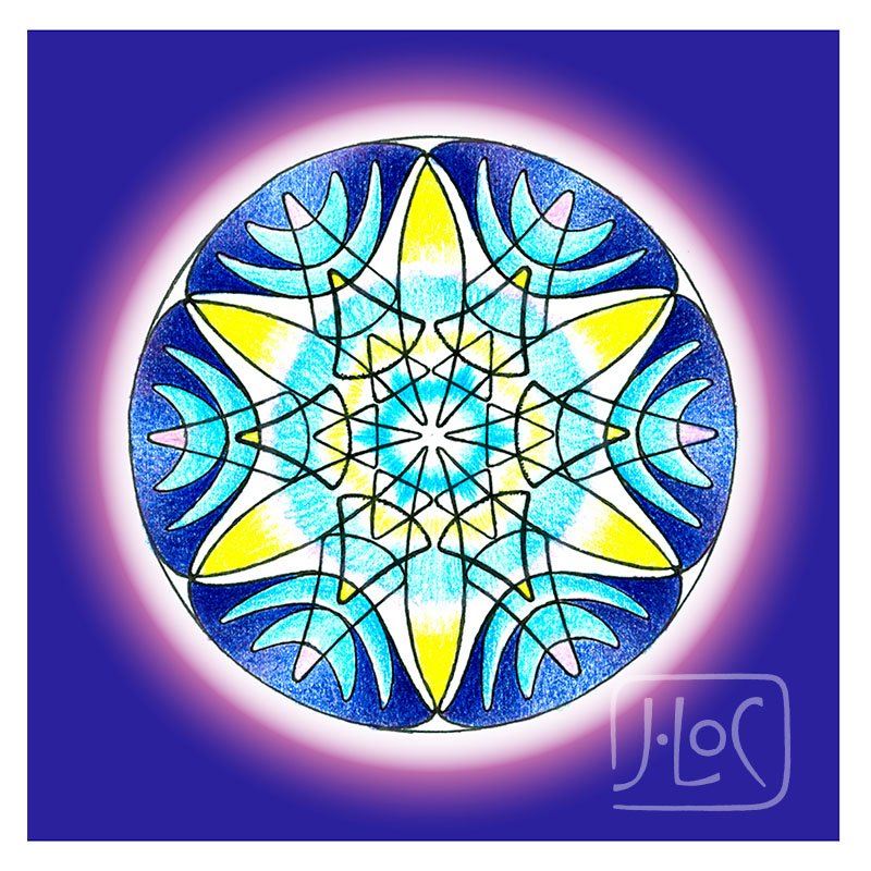 Mandala ze souboru orgánových mandal, který byl prvním souborem určeným v roce 2006 k použití na přívěsky. Nyní upravená v barevném pozadí, tištěná na karton 300g v plastovém obalu.
