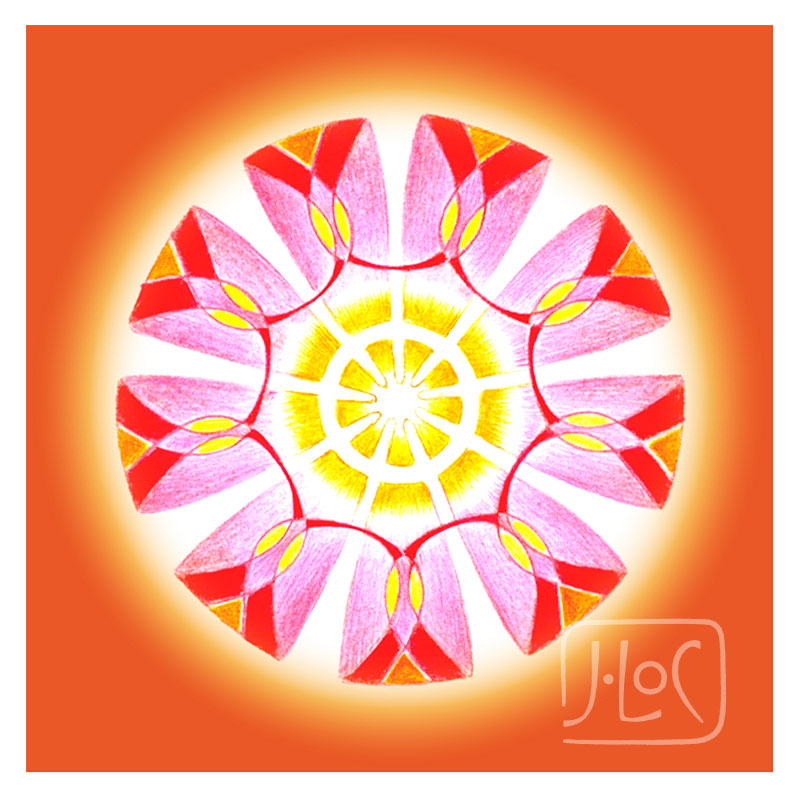 Mandala ze souboru orgánových mandal, který byl prvním souborem určeným v roce 2006 k použití na přívěsky. Nyní upravená v barevném pozadí, tištěná na karton 300g v plastovém obalu.