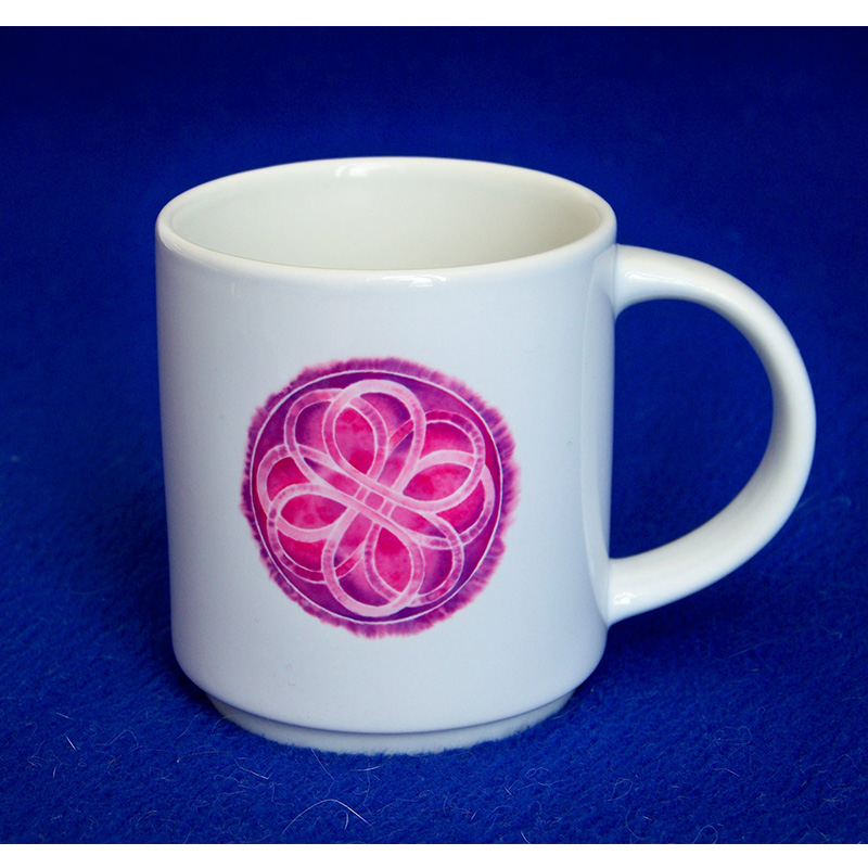 Keramický hrnek bílý malý (150ml) s natištěnou mandalou v průměru 5 cm technikou sublimačního tisku. S visačkou a nálepkou, kde je popis námětu mandaly a autor a výrobce.