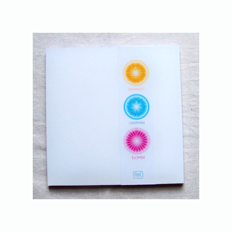 Tři symboly : SERAPHIM, ORAPHIM a ELOHIM ve velikosti 14 x 14 cm zalaminované jsou umístěné v ručně vyrobené kapse spolu s třemi kartičkami textovými. Ty obsahují verš napsaný ke každému symbolu a barvou je snadno přiřadíte k barevné podobě symbolu. Dále je zde kartička s doprovodným textem a stručný popis významu každého symbolu.