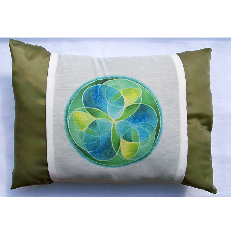 Polštářek barevný s bílým pruhem ve velikosti 30 x 40 cm s potištěnou barevnou mandalou, je možné používat jako dekorativní výzdobu, ale také jako uplatnění pozitivního působení mandaly nebo symbolu ve vašem životním prostoru a jako podporu pro vaše duchovní zrání a vnitřní sílu.